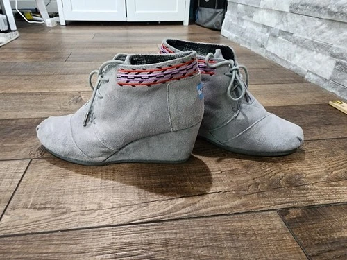 Toms Boots Womens 8 Desert Ankle Booties Grey Suede Round Toe Wedge Heels