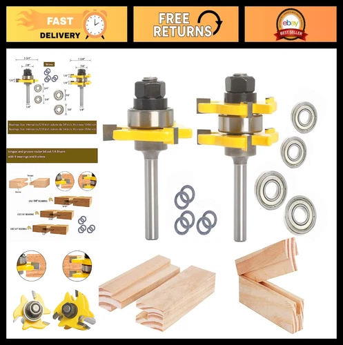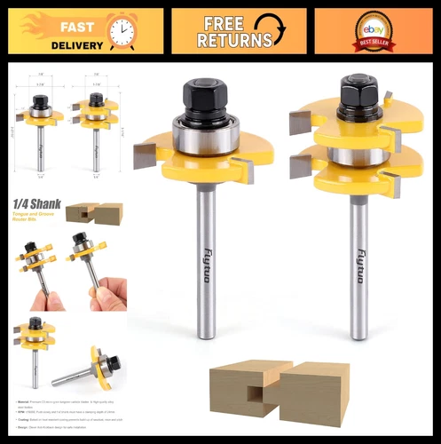 2PCS Router Bit Set - 1/4" Shank Tongue & Groove, 3 Teeth T Shape Wood Cutter