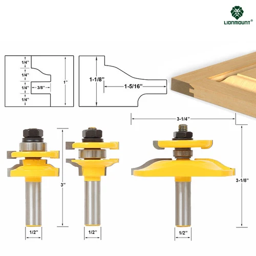 1/2 12mm Shank Joint Rail & Stile Router Bit Tongue & Groove Large Panel Cutter