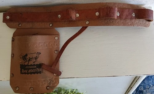 Vintage Kids Brown Leather Junior Tool Belt Pouch Holster Western Adjustable
