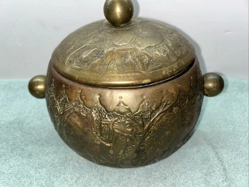 Vintage Cobber Brass Ice Bucket Hand Tooled Mid Century 1950's Midfle East India