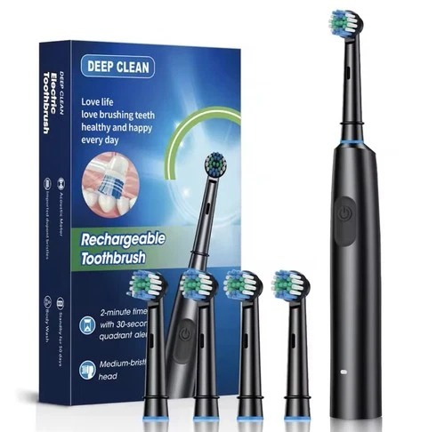Rotating Electric Toothbrush Rechargeable with 4 Brush Heads and 5 Modes Timer