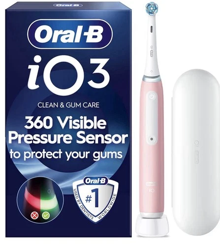 Oral-B iO3 Electric Toothbrushes Adults, 1 Toothbrush Head and Travel Case,Pink
