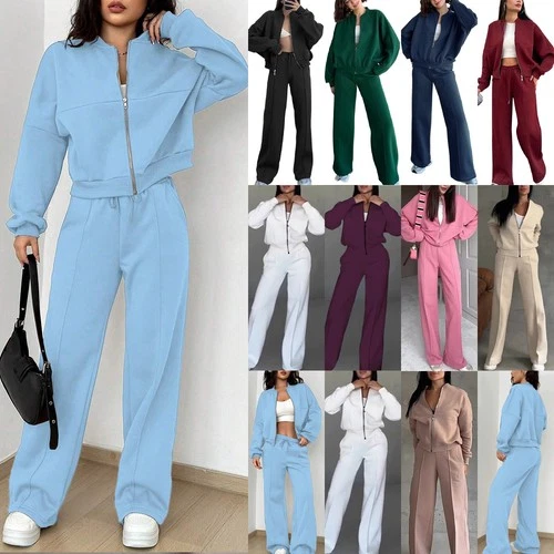 2PCs Sets Womens Casual Joggers Tracksuit Hoodies Zips Coat Tops PANTS PLUS SIZE
