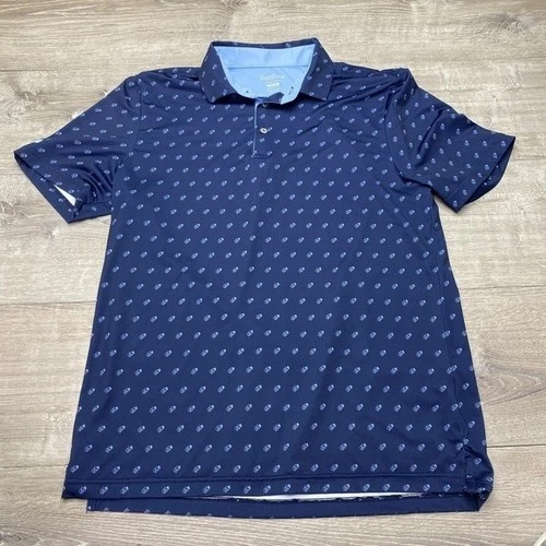 Good Good Polo Shirt Mens Medium Blue Logo Print Golf Stretch Performance Top