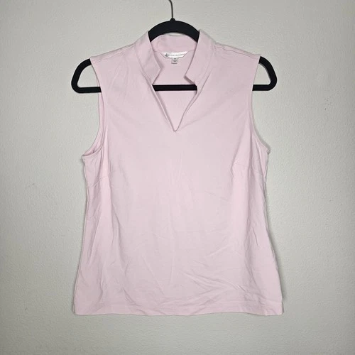 Brooks Brothers Womens Medium Pink V-Neck Sleeveless Shirt Performance Golf Top
