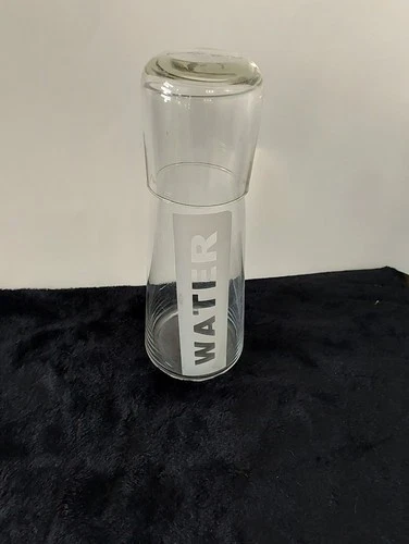 VTG Torre & Tagus Etched Glass Water Carafe Tumble-Up w/ glass for bedside