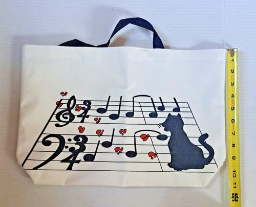 Canvas Tote Bag/Purse Black Cat with Notes