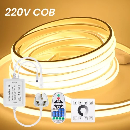 220V COB LED Strip Neon Rope Lights Dimmable Waterproof Outdoor Garden+UK Plug