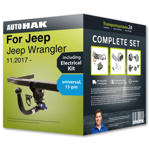 Towbar detachable for JEEP Jeep Wrangler 17- + 13pin universal electrical-kit FP