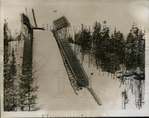 1934 Press Photo Seignory Club ski jump tower in Eastern Canada - net06649