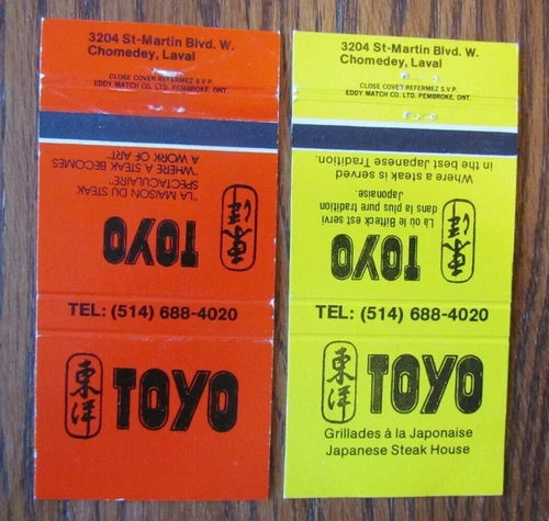 JAPANESE RESTAURANT MATCHBOOK MATCHCOVERS: TOYO (LAVAL, QUEBEC) -E8