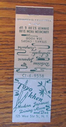JAPANESE RESTAURANT MATCHBOOK COVER: TOYO KHEN NEW YORK CITY EMPTY MATCHCOVER C8