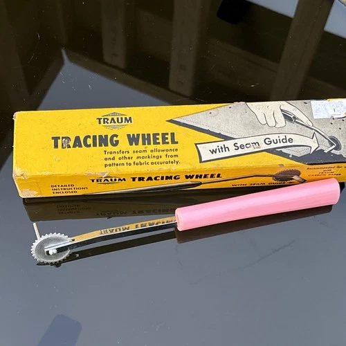 1949 Traum Pink Tracing Wheel With Seam Guide In Box Vintage Great Condition