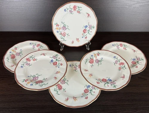6 Wedgwood England Christabel 8” Bone China Salad Plates Flowers & Butterflies