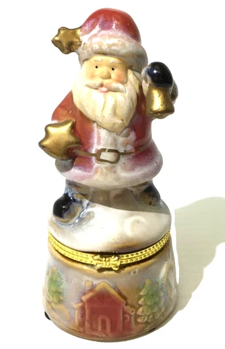 VTG Christmas Porcelain Hinged Trinket Box Keepsake Santa Tree Jingle Bell 5"