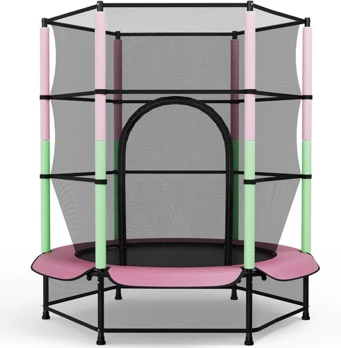 Kid Trampoline With Safety Net Enclosure Children Outdoor Garden Fun Toy