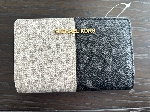 Michael Kors Jet Set Travel Bifold Zip Coin Credit Card Wallet Black New