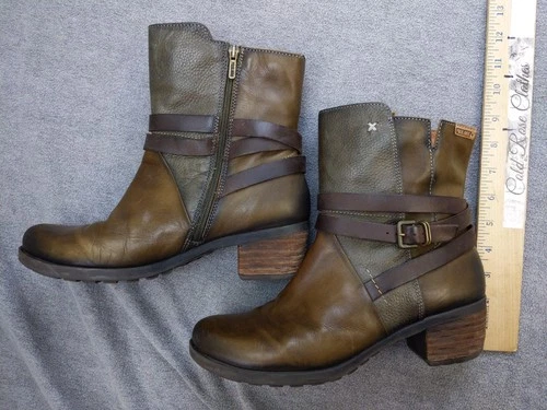 Pikolinos Boots Womens Size 11 42 Brown Leather Ankle Zip Strap Buckle Booties