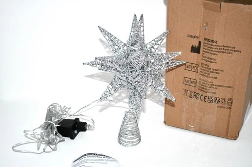 Luxspire 3D Lighted Christmas Tree Topper Star w/ Remote, USB Timer, 8 Modes, Si