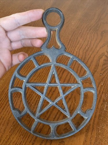 19th C Cast Iron Pentagram Trivet Wiccan Pagan Goddess Witchcraft Occult Symbol
