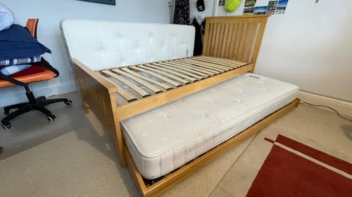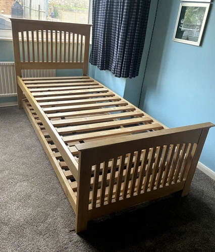Solid Wood Single Bed Frame with Pull-Out Trundle Guest Bed + Hypnos Mattress