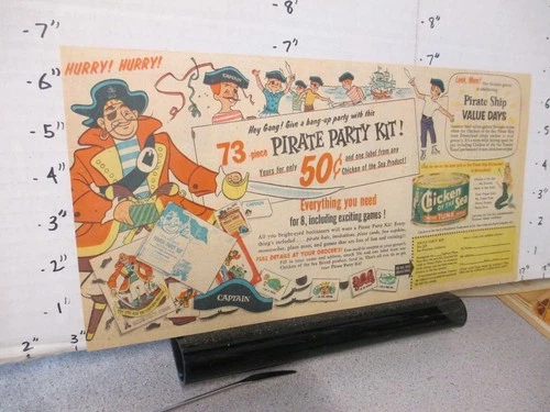 newspaper ad 1955 CHICKEN OF THE SEA tuna can pirate ship party kit premium