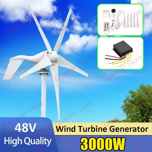 3000W 48V Wind Turbine Generator Green Power 5 Blades Charge Controller Kit sum