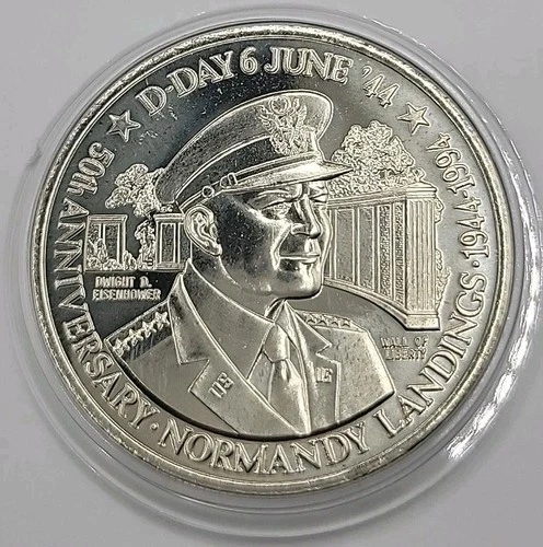 1994 Turks and Caicos Islands D-Day 50th Anniversary Eisenhower 5 Crowns coin