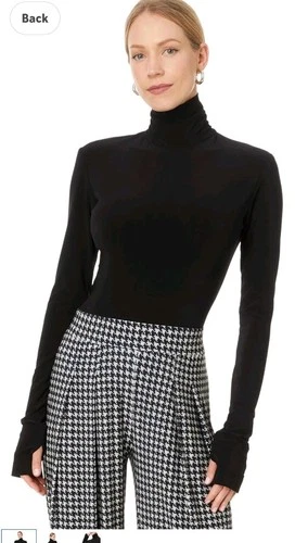 Norma Kamali Womens Slim Fit Stretch Turtle Neck Long Sleeve Top Black XL $195