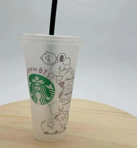 Starbucks Reusable Cold Cup 24Oz BT21 Inspired Cartoon Characters Plastic Lid