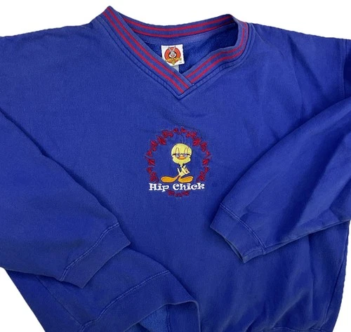 Vintage Looney Tunes Tweety Bird Sweatshirt Hip Chick Y2K Embroidered Pullover L