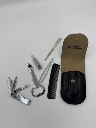 Vintage GE General Electric Perfect Attendance Manicure Set - Leather Case