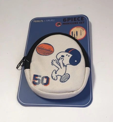 PEANUTS SNOOPY 6 PC Football Themed MANICURE NAIL TRAVEL POUCH SET By Celavi NEW