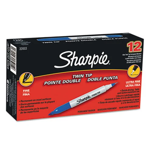 Sharpie 32003 Twin-Tip Blue Fine and Ultra-Fine Point Permanent Marker - 12/Pack