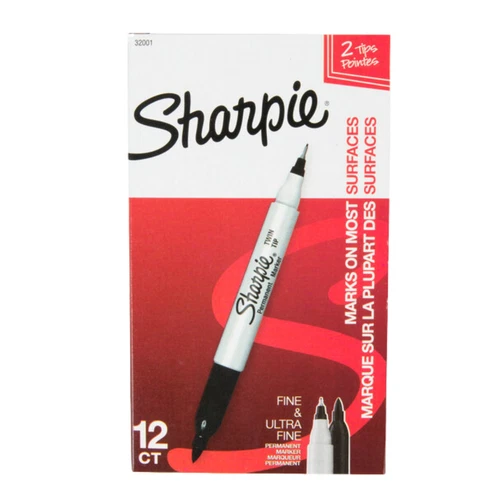 Sharpie 32001 Twin-Tip Black Fine and Ultra-Fine Point Permanent Marker - 12/Pk