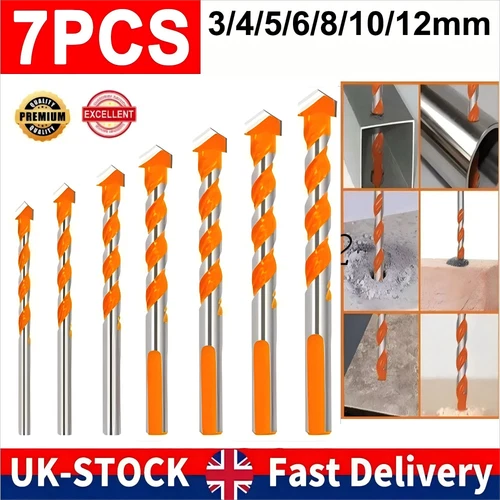 7PCS Orange Masonry Drill Bit-Set Extra Tough Carbide for Stone Concrete Brick,