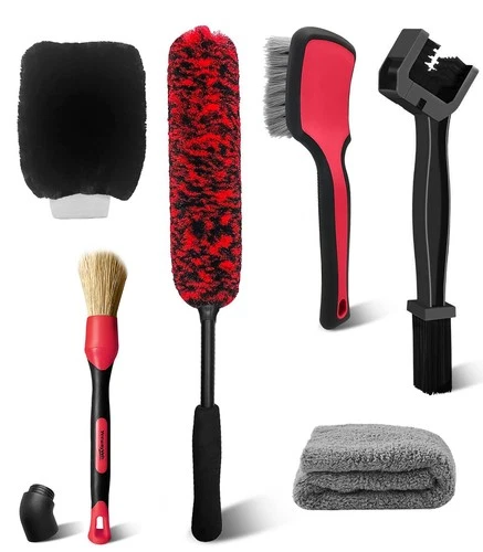 YeewayVeh 6PCS Motorcycle Cleaning Kit, Wool Wheel Brush, Tire and Chain Brush,