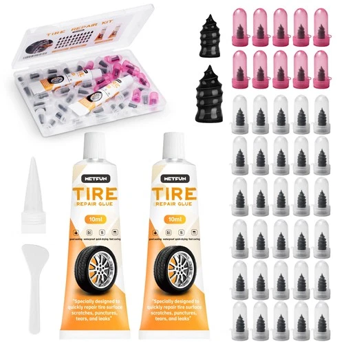 40 PCS Tire Repair Rubber Nails Kit with 2 Tubes of Black Sealant Glue,...