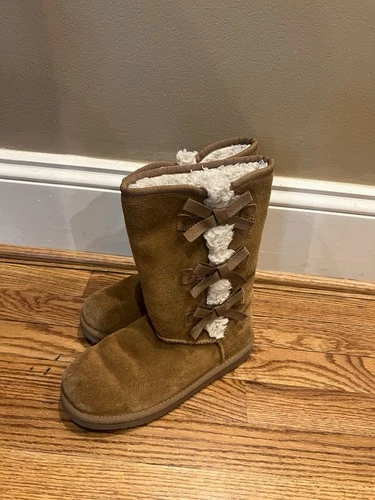 Koolaburra UGG Women's Victoria Tall Chestnut Faux Fur Shearling Suede Boots 6