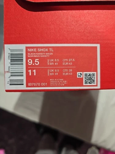 Nike Shox TL. Black and Varsity Maize. Uk 8.5. RRP £165. Brand New