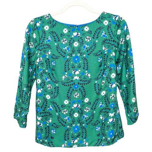BODEN Green Blue Floral Viscose Silk Blend Blouse 3/4 Sleeves Women's UK 6 US 2