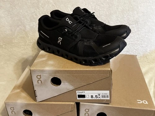 New On Running Men’s UK 8 EU 42 Cloud 5 Waterproof Black CloudTec Shoes Trainers
