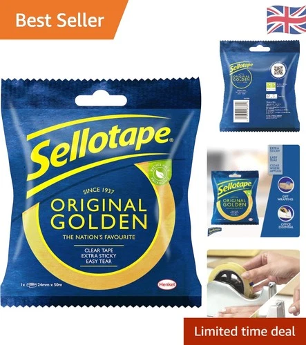 Ultra Sticky & Water Resistant Clear Tape - Ideal for Envelopes & Cards, 50m