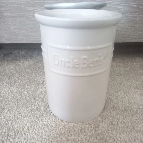 Uncle Ben's White Ceramic Utensil Storage Pot Jar Kitchen