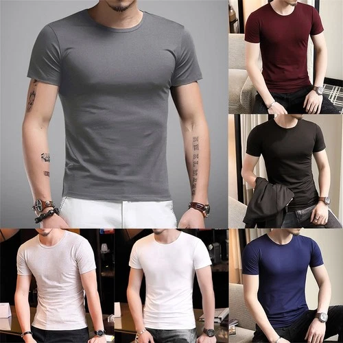 Men Short Sleeve Round Neck Slim Fit T Shirt for Base Layer Underlayer Top
