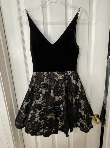 B. Darlin Black Velvet Bodice Mini Dress With Nude Underlay