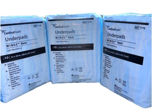 Lot of 30 Cardinal Health Underpads Wings Basic 23x36in Light Absorbency