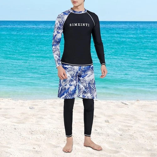 Men Long Sleeve Swimsuit Elastic Diving Suit Bathing Suit Undersuit Swim Trunks