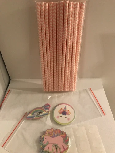 24Pc Rainbow Unicorn Party Paper Drinking Straws Kids Birthday Theme Decor Party